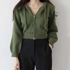 제니트 여성 기본핏 후드넥 캐주얼룩 크롭 투웨이 집업 니트 가디건 아우터 코리크롭후드