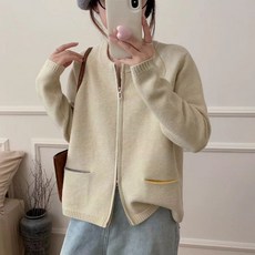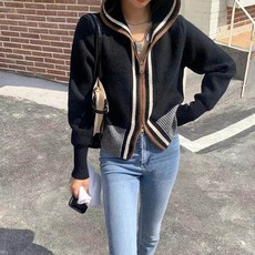 해피유통 여성용 후드 니트 가디건 봄 가을 캐주얼 지퍼 스타일zjm