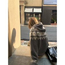 하라크 여성 루즈핏 후드집업 꽈배기 니트 가디건